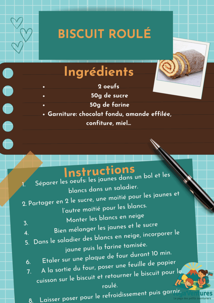 - Des biscuits roulé, garni selon les goûts de chaque enfant (chocolat à tartiner, confiture de myrtille ou confiture de fraise)