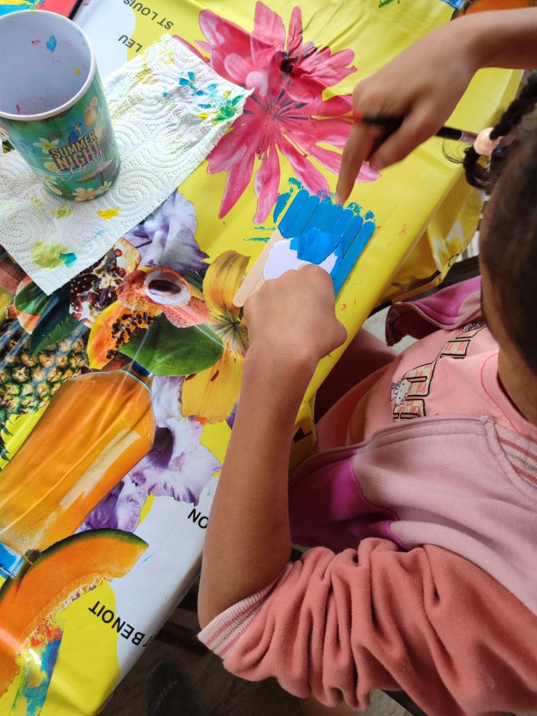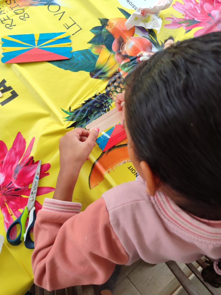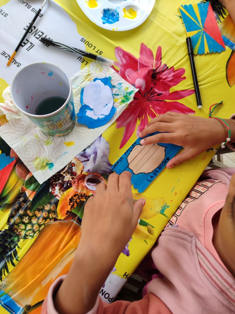 Place à la peinture ce vendredi, les enfants ont confectionné des puzzles péi avec des bâtonnets de glace.